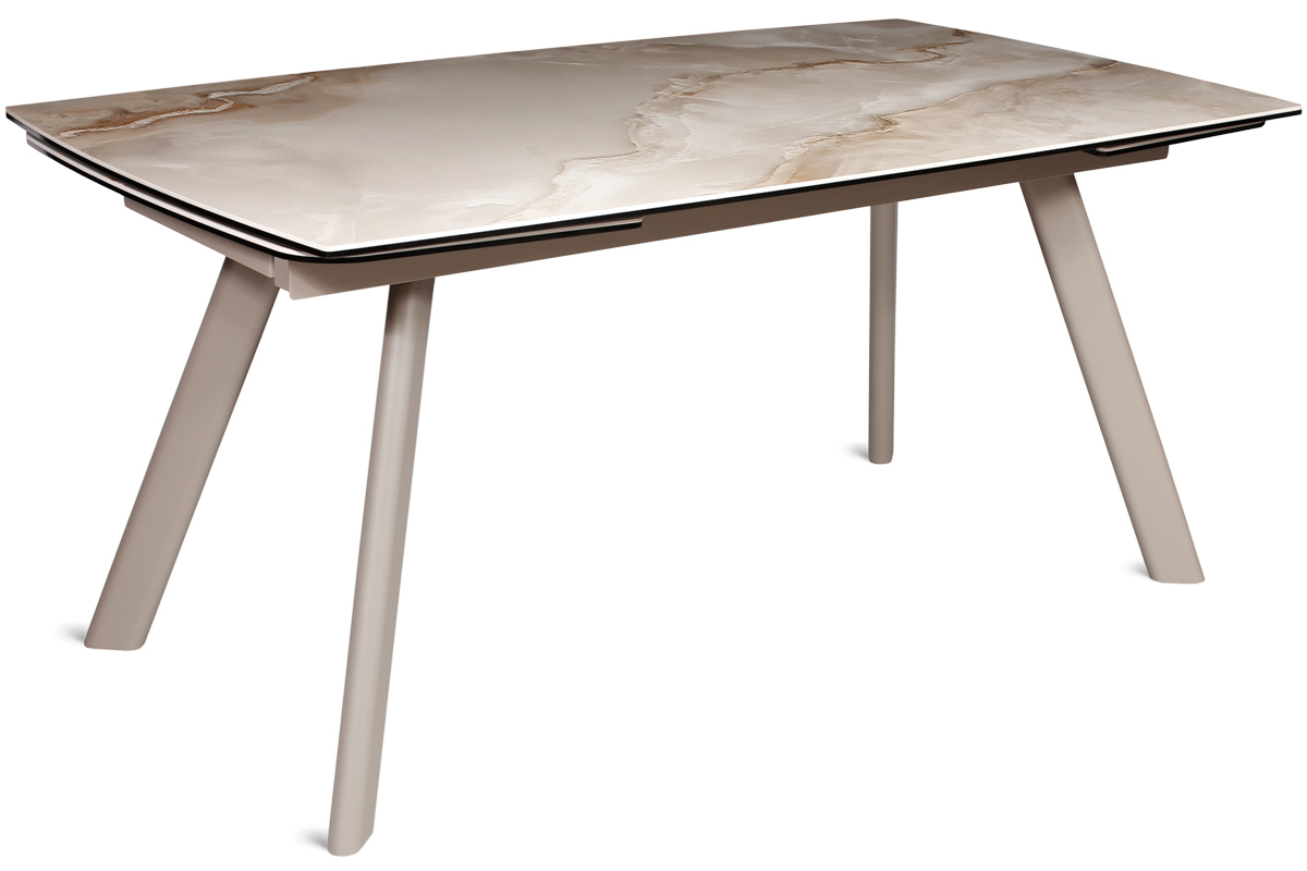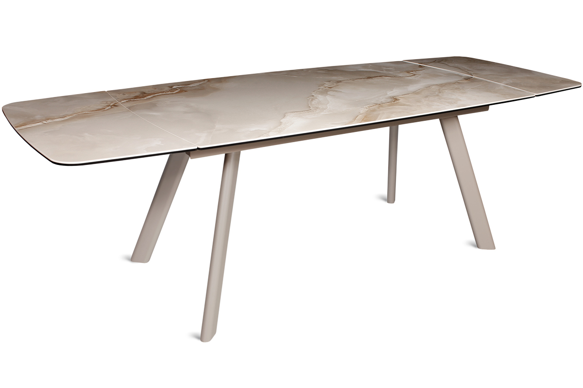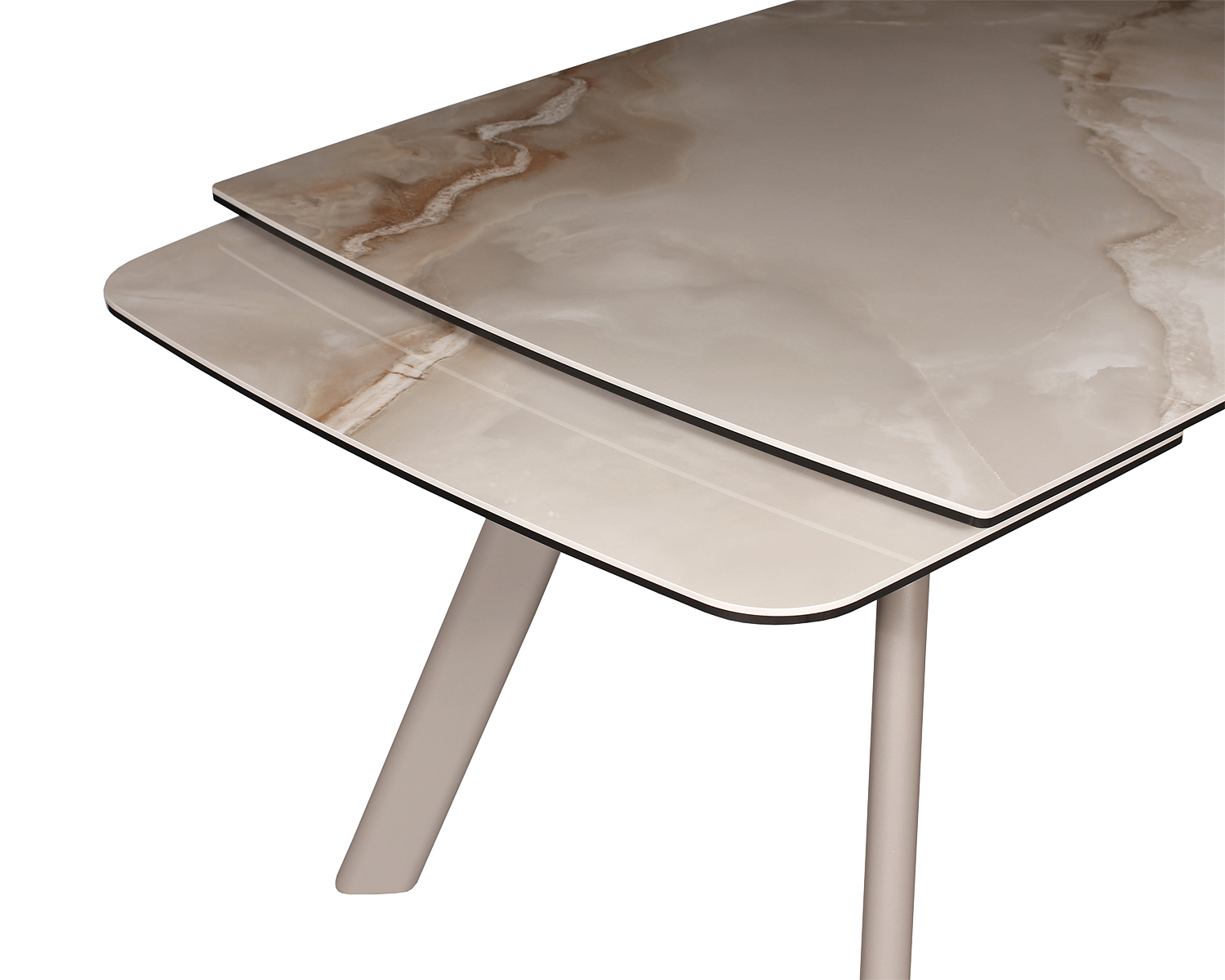 Стол OLIVER в минималистическом стиле примечателен красотой керамогранитной столешницы. Прямые ножки округлой формы расположены так, чтобы размещение за столом было максимально удобным. Керамическая полотно наклеено на прочное закаленное стекло специальным методом и образует с ним практически единое целое. Стол оснащен механизмом раздвижения двух торцевых вставок, увеличивающих столешницу на 80 см и, что важно, сохраняющих непрерывность мраморного рисунка.