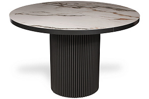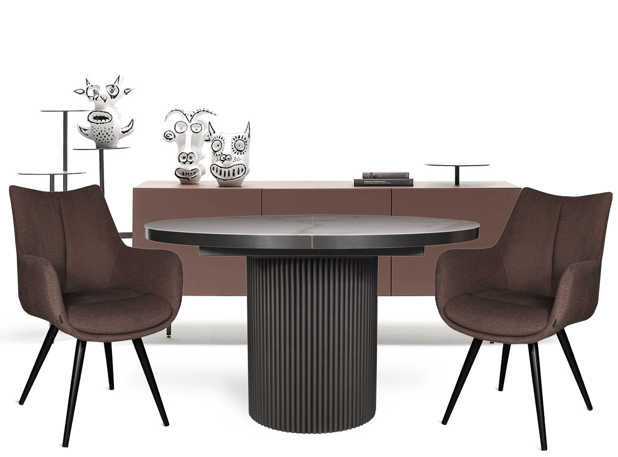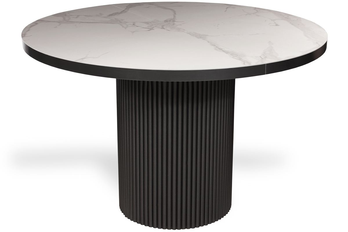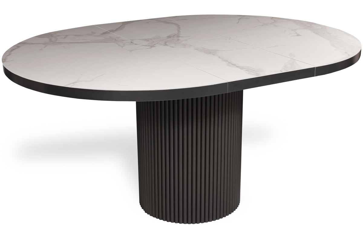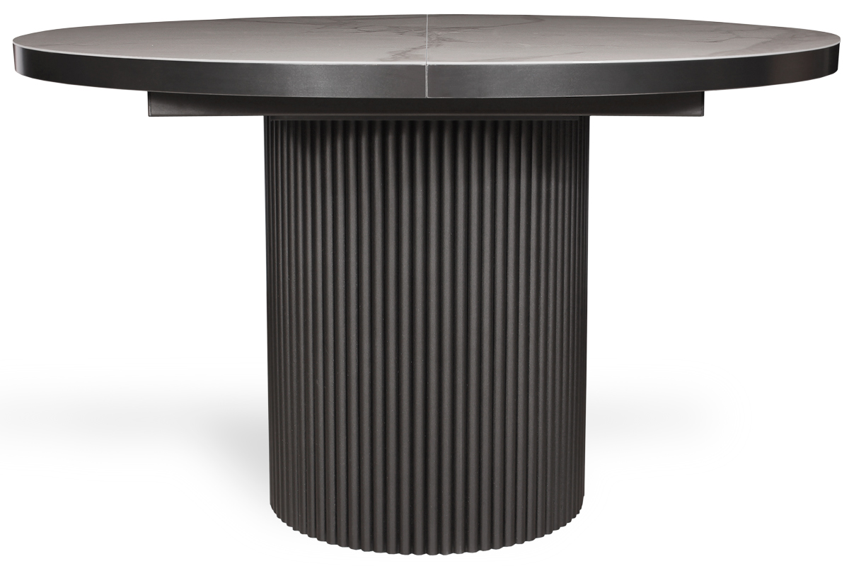 В дизайне круглого стола ORLANDO акцент на опору, выполненную из рифленой стали. Подобное исполнение очень актуально в современном интерьере и прекрасно сочетается с другими кухонными и стеновыми рифлеными поверхностями, добавляющими глубину и текстуру в пространство. Стол ORLANDO с красивым керамогранитным покрытием не привязан к какому-то определенному стилю, он хорошо впишется и в классику, и в неоклассику. Высокотехнологичный механизм раскладывания легко превращает стол в овальный и увеличивает его на 2 посадочных места. ORLANDO имеет продуманную эргономику, обеспечивающую удобное расположение за столом. Керамогранит наклеен на прочную подложку из дерева, что гарантирует безопасность и долговечность эксплуатации.